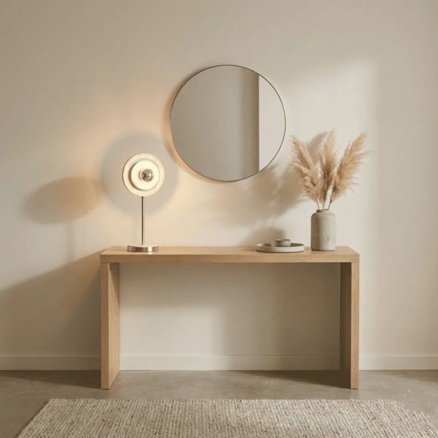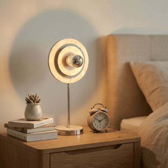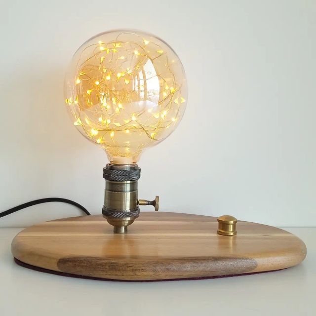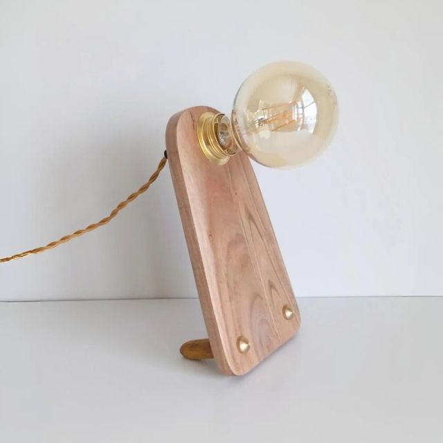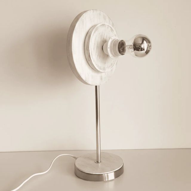 Lámpara Artesanal de Mesa Luna en madera y acero