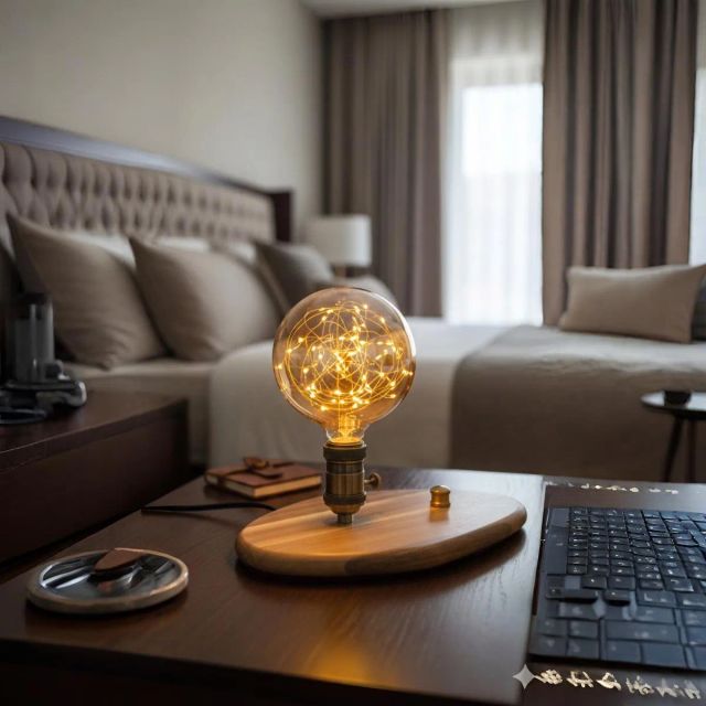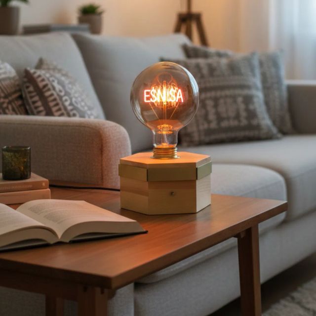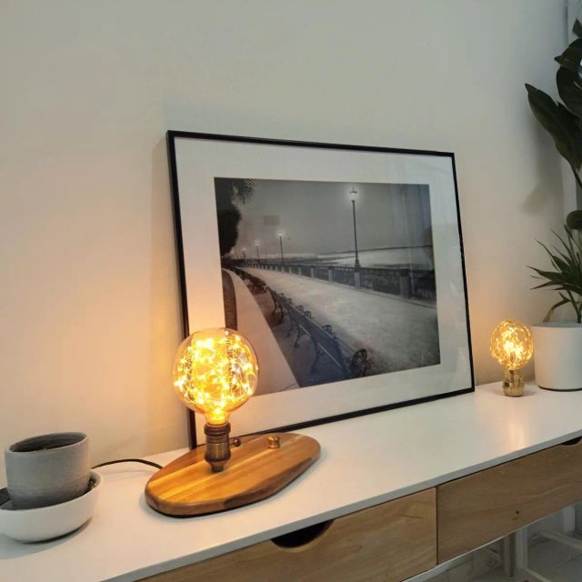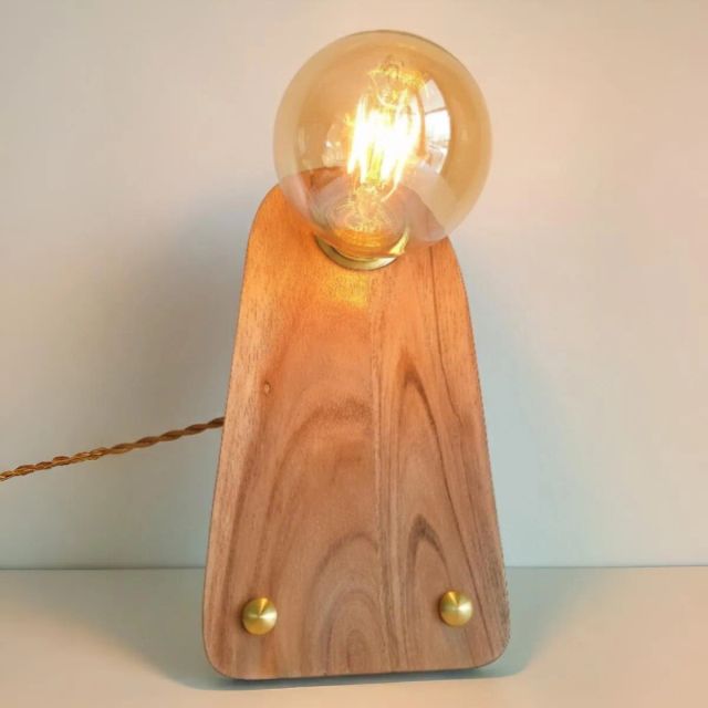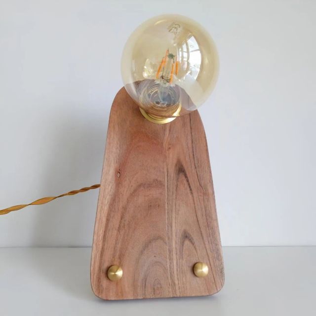 Lámpara Artesanal de Mesa Áurea en Madera de Acacia