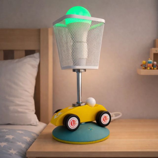 Lámpara Infantil Coche de Carreras + Bombilla RGB