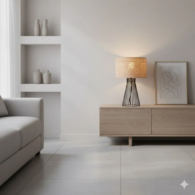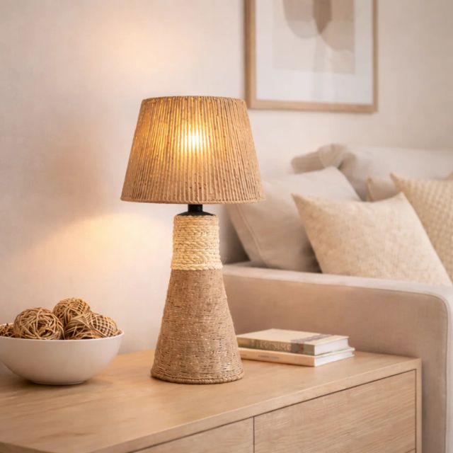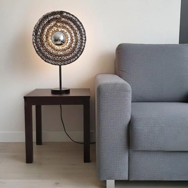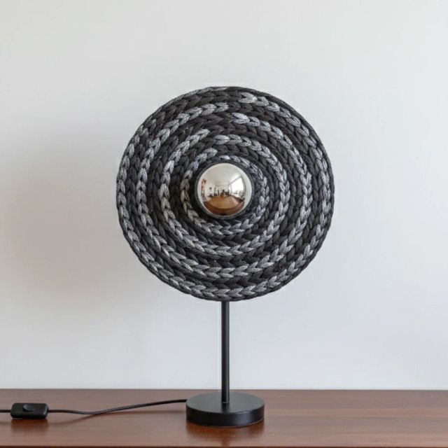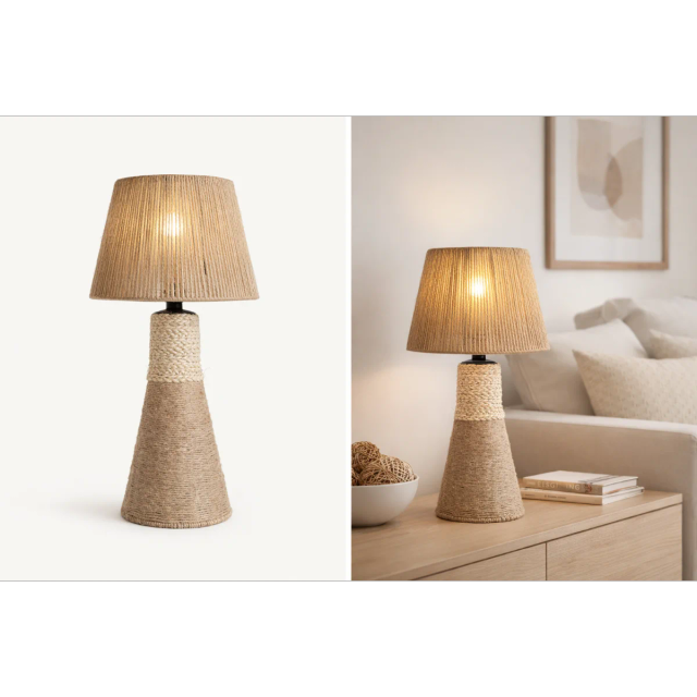 Lámpara Artesanal de Mesa Cuerda y Acero
