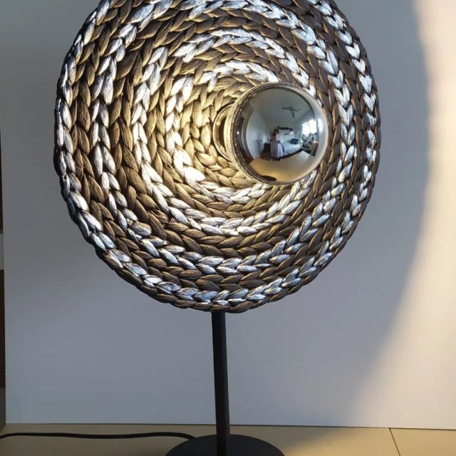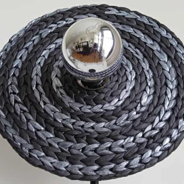 Lámpara artesanal de cuerda y acero unica, solo hay esta. Consulta disponibilidad y condiciones especiales para esta colección.