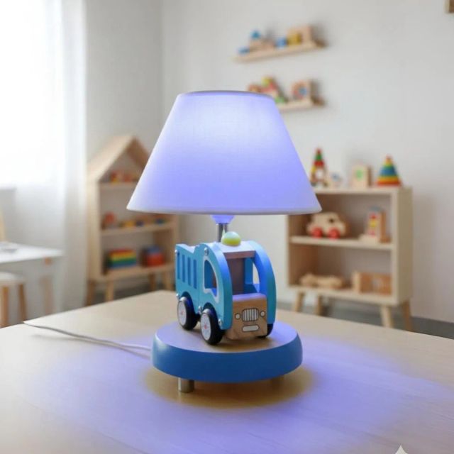 Lámpara Infantil Volquete Azul de Madera Maciza